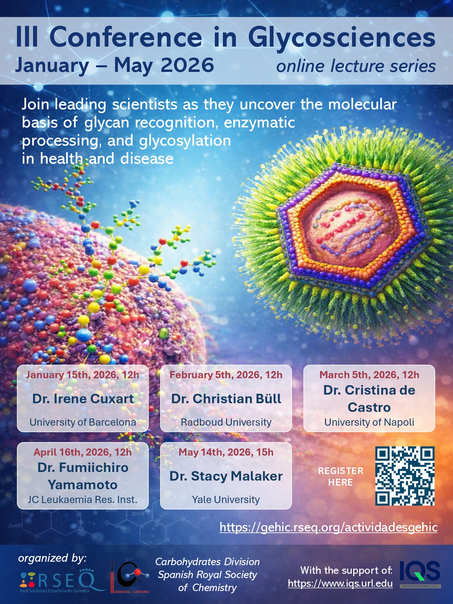 A series of 5 online lectures, one per month, from January to May 2026 (Jan 15 at 12:00; Feb 5 at 12:00; Mar 5 at 12:00; Apr 16 at 12:00; May 14 at 15:00). Hosted on the TEAMS platform.